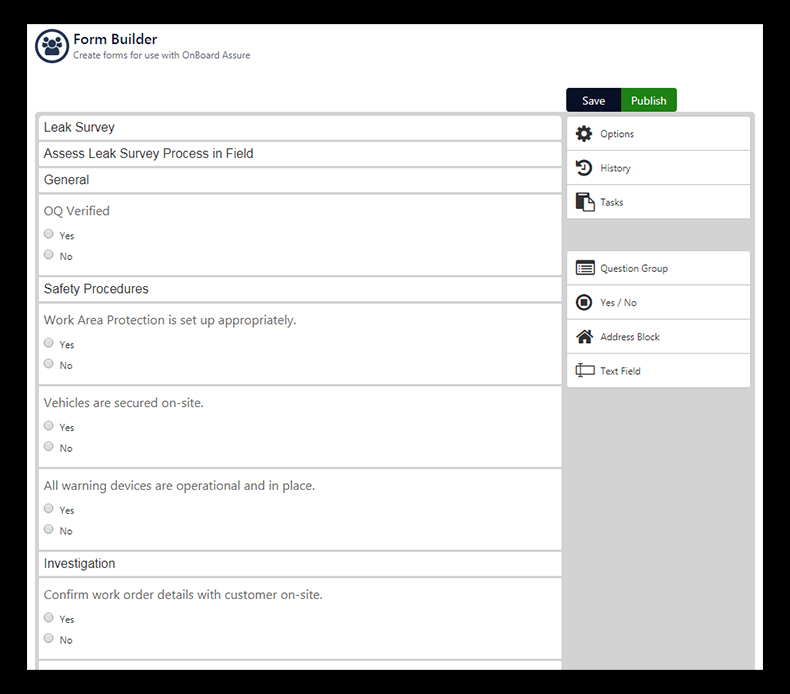 Build digital, interactive documents with OnBoard® Form Builder and tie these forms and checklists to OQs as well as workflows, internal training, inventory, annual reviews, and more! By using custom, company-specific forms, you can ensure your team is following your company’s policies, safe practices, and hold the correct qualifications for the work being performed.
